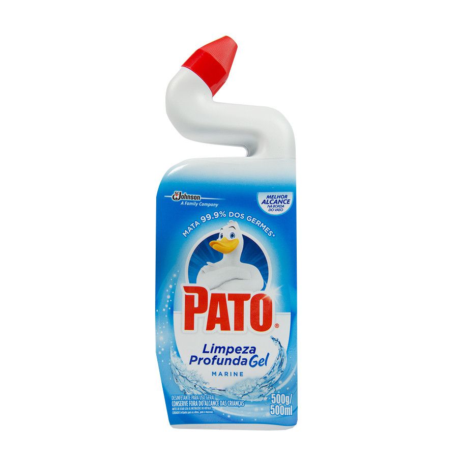 O desinfetante 500ml Pato Cloro Gel limpa profundamente matando germes, bactérias e retirando mofo das superfícies laváveis e resistentes ao cloro. Sua exclusiva fórmula associa a poderosa ação germicida do cloro com o poder de limpeza do Pato, removendo até as sujeiras mais difíceis (limo, sujeiras escuras, resíduos e mofo) deixando seu banheiro limpo e livre de germes.